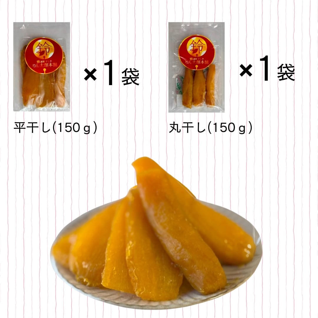 りん太郎本舗の干し芋は初めての方や、平干しも丸干しも大好きな方に、お勧めのセットです。